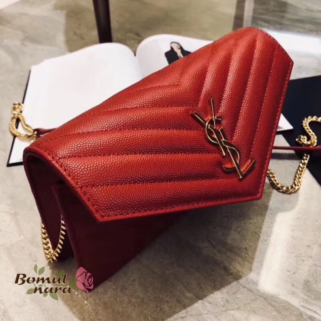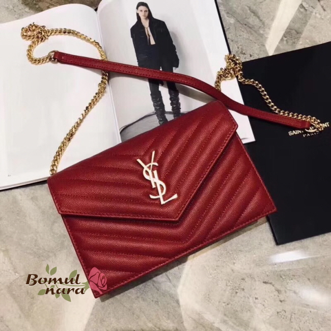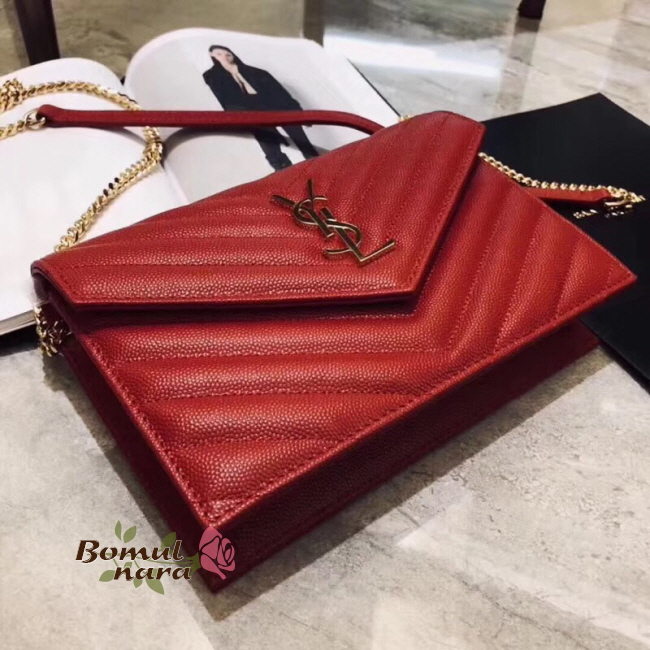 [스페셜오더]SAINT LAURENT-393953 생 로랑 금장 레드 마틀라세 모노그램 엔벨로프 woc 체인지갑