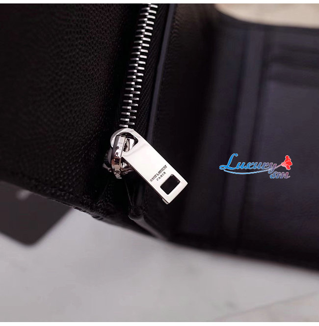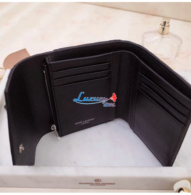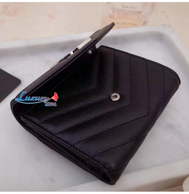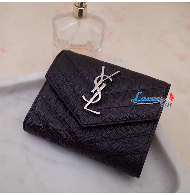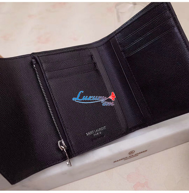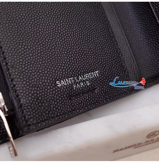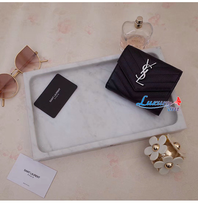 [스페셜오더]SAINT LAURENT-403943 생 로랑 블랙 그랑 드 뿌드르 텍스처드 마틀라세 가죽 모노그램 실버메탈 컴팩트 3단 지갑