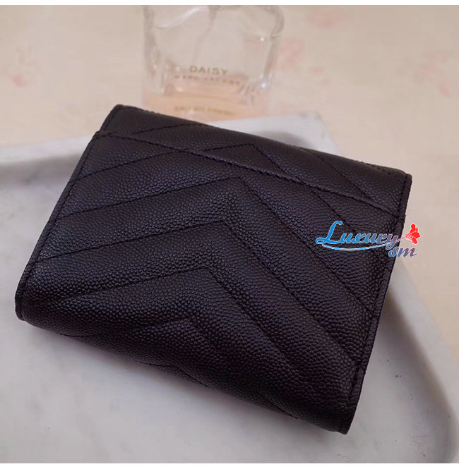 [스페셜오더]SAINT LAURENT-403943 생 로랑 블랙 그랑 드 뿌드르 텍스처드 마틀라세 가죽 모노그램 골드메탈 컴팩트 3단 지갑