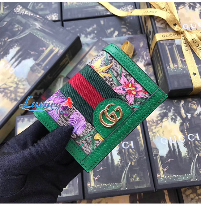 [스페셜오더]GUCCI-523155 8709 구찌 오피디아 그린 GG 플로라 카드 케이스 지갑
