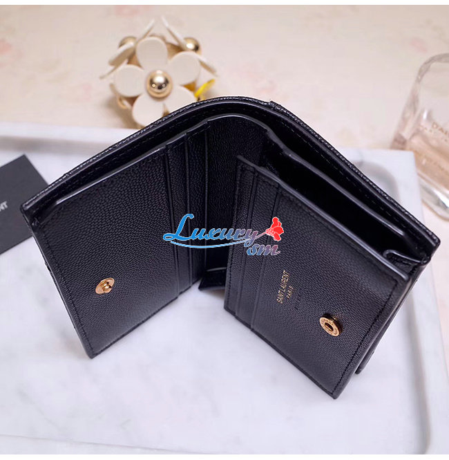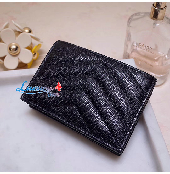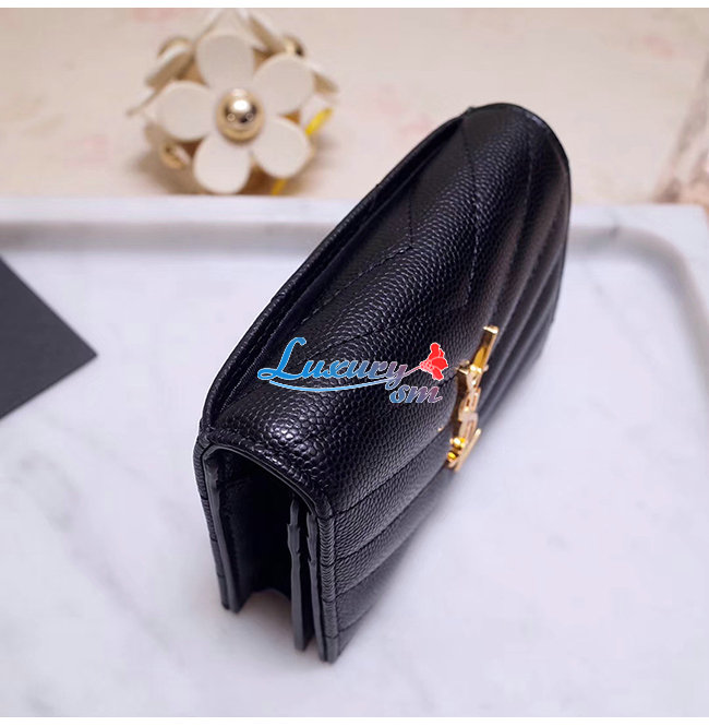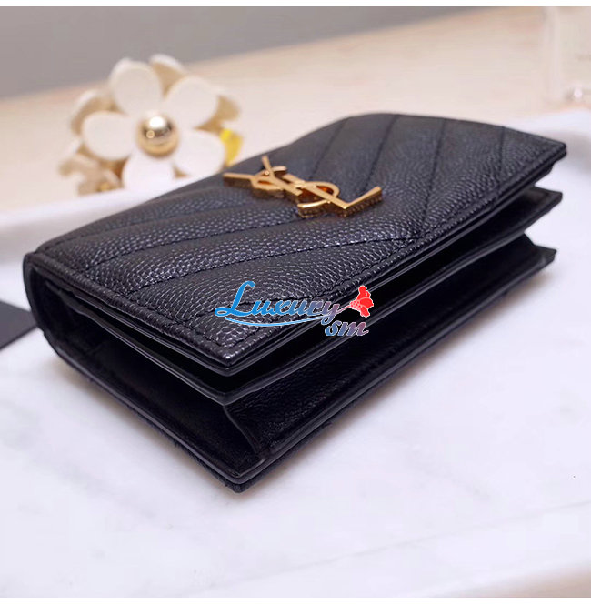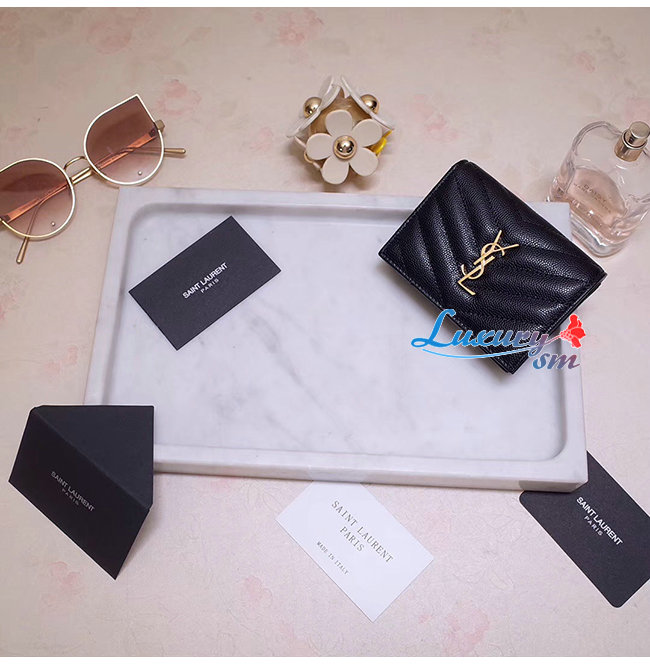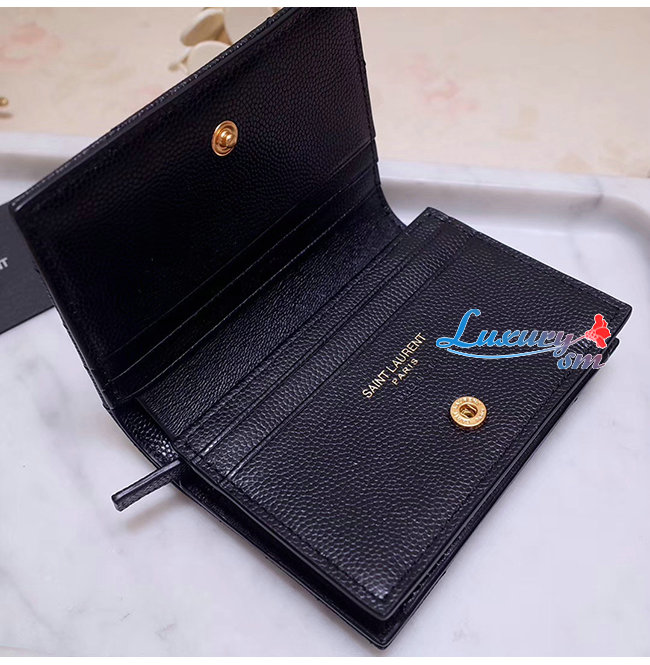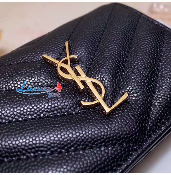 [스페셜오더]SAINT LAURENT-530841 생 로랑 블랙 텍스처드 퀼티드 가죽 골드 모노그램 카드 홀더
