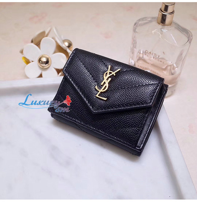 [스페셜오더]SAINT LAURENT-505118 생 로랑 블랙 마틀라세 가죽 금장 모노그램 티니 월릿