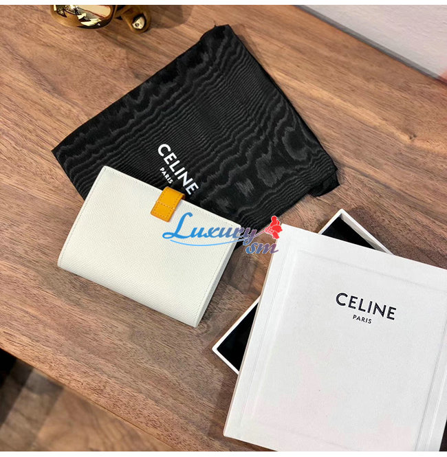 [스페셜오더]CELINE-10B643 셀린느 화이트/브라운 카프스킨 미디엄 스트랩 월릿