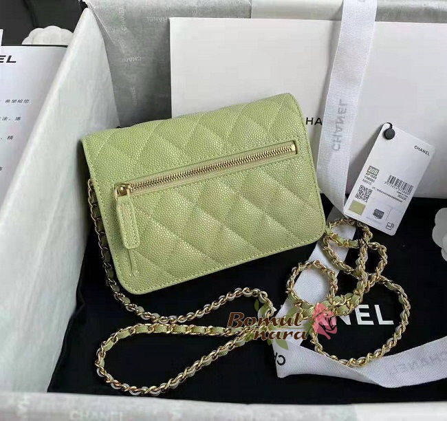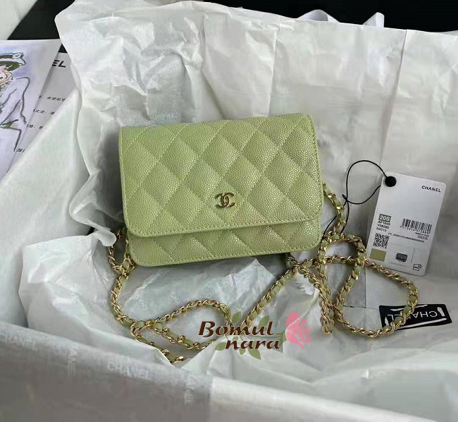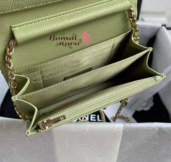 [스페셜오더]CHANEL-AP1649 샤넬 그린 캐비어 골드 메탈 WOC 미니 체인 지갑
