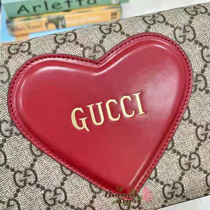 로맨스를 상징하는 3D 하트 쉐입 디테일과 구찌 로고가