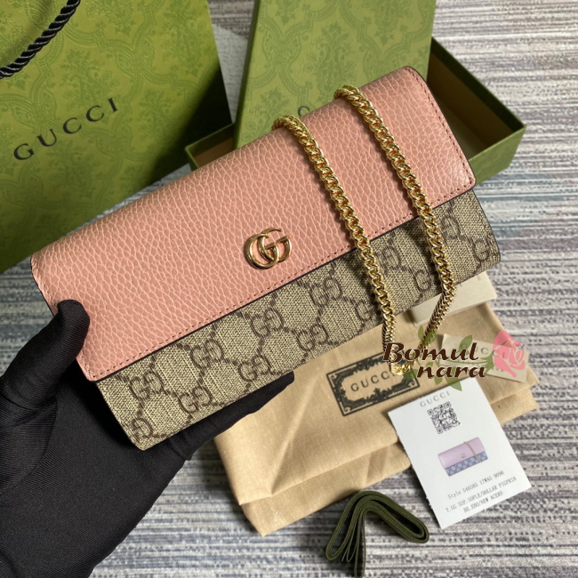 [스페셜오더]GUCCI-546585 1283 구찌 더스트 핑크 GG 마몽 체인 지갑