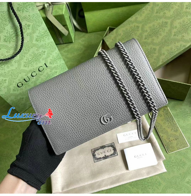 [스페셜오더]GUCCI-497985 1711 구찌 GG 마몽 그레이 가죽 체인 지갑