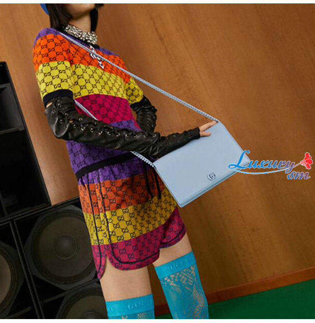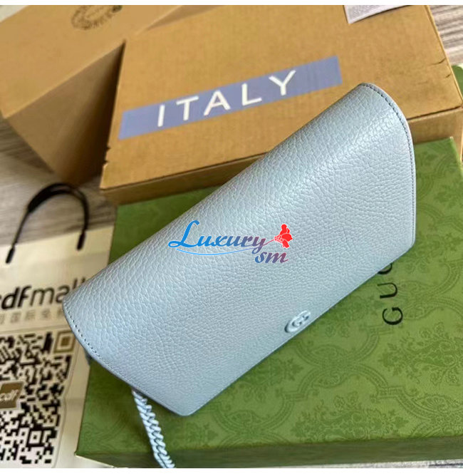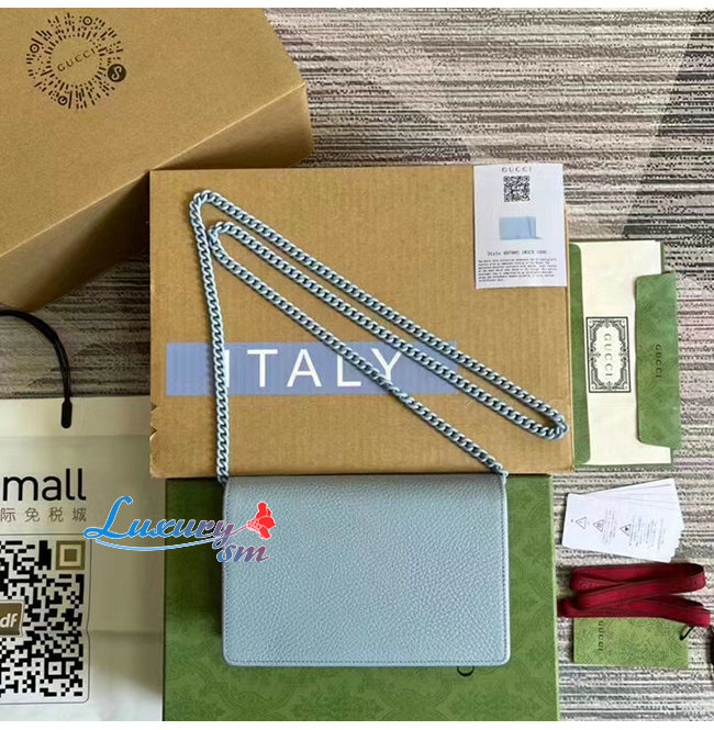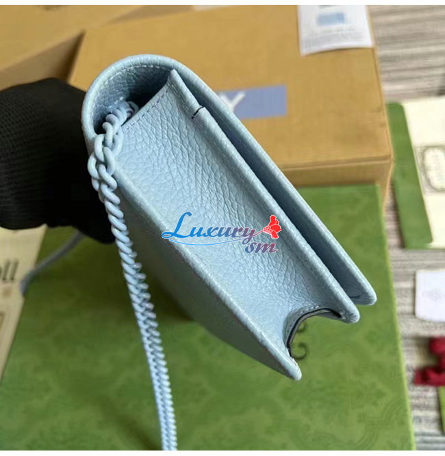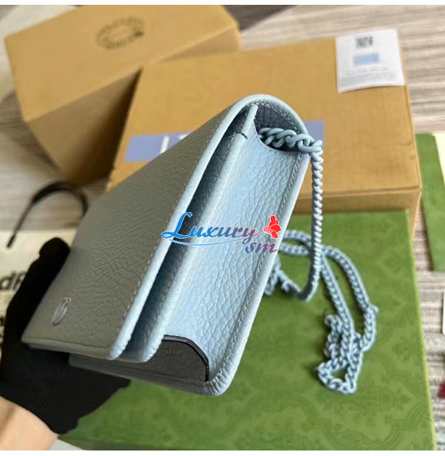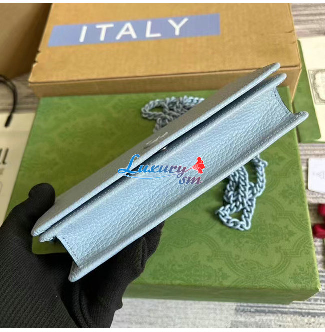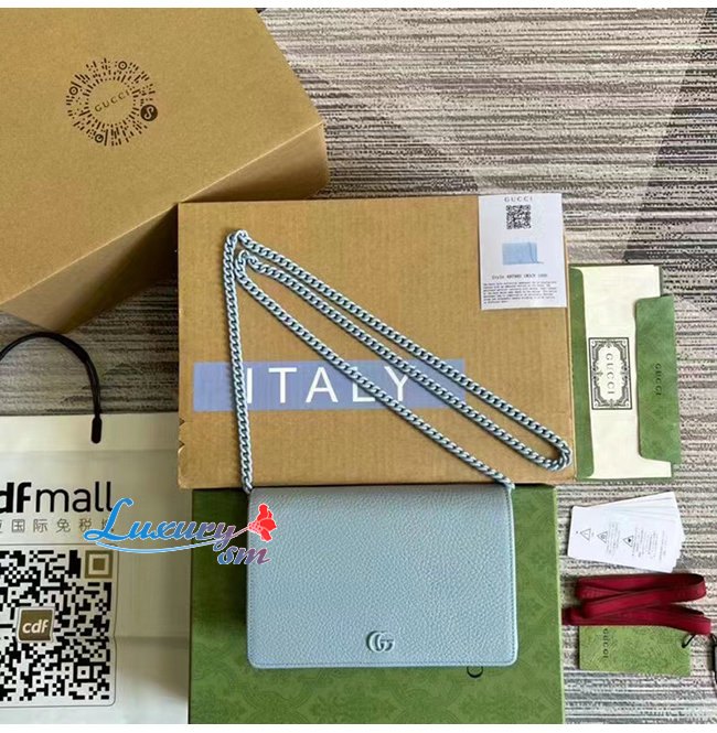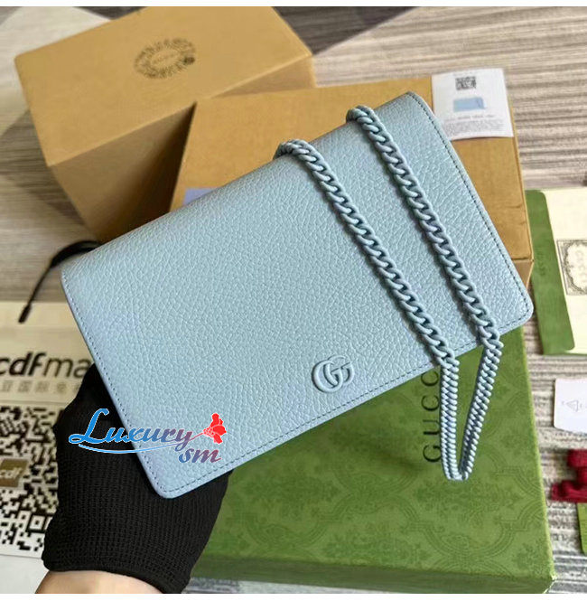[스페셜오더]GUCCI-497985 4928 구찌 GG 마몽 페일 블루 가죽 체인 지갑