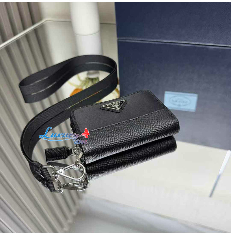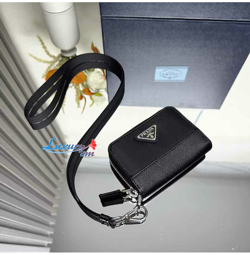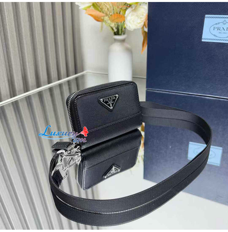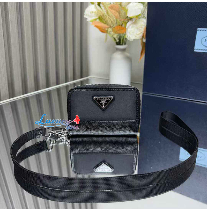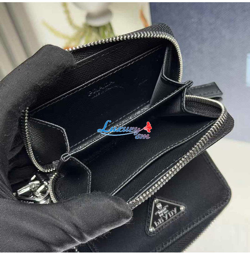 [스페셜오더]PRADA-2MR039 프라다 블랙 리나일론 사피아노 가죽 동전 지갑