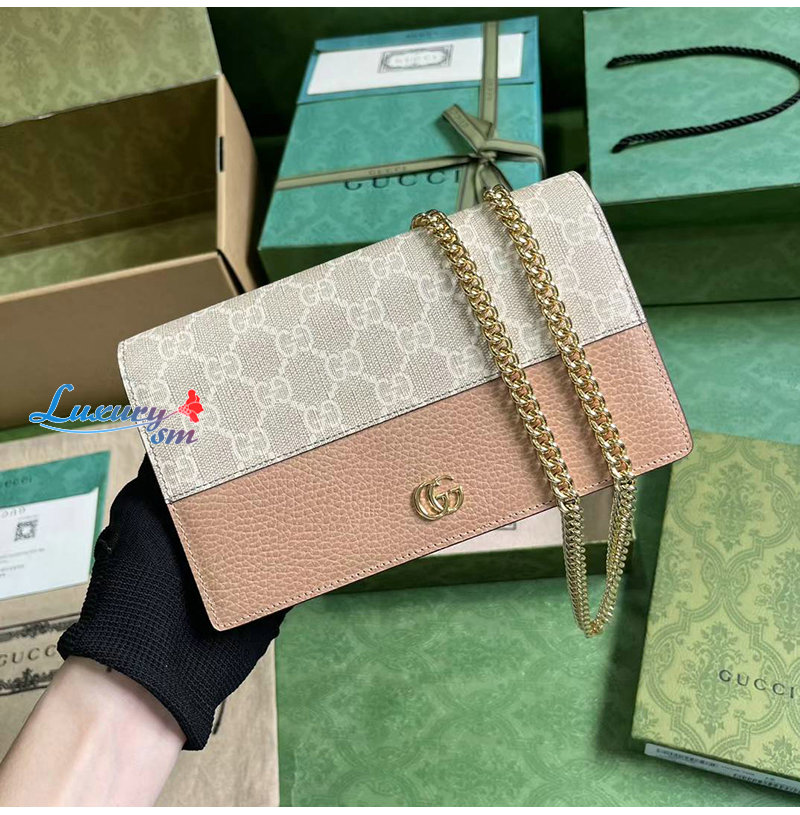 [스페셜오더]GUCCI-497985 9543 구찌 오트밀 GG 마몽 바이컬러 미니 체인백