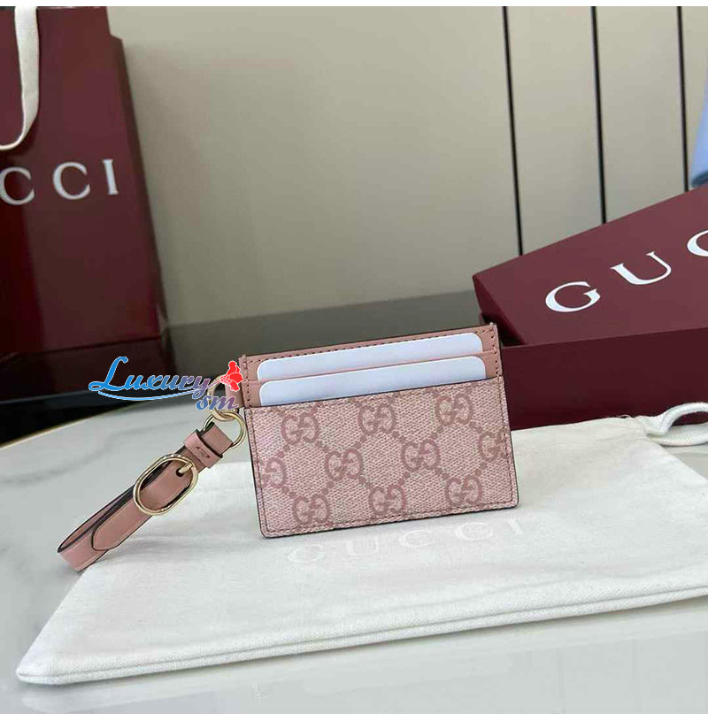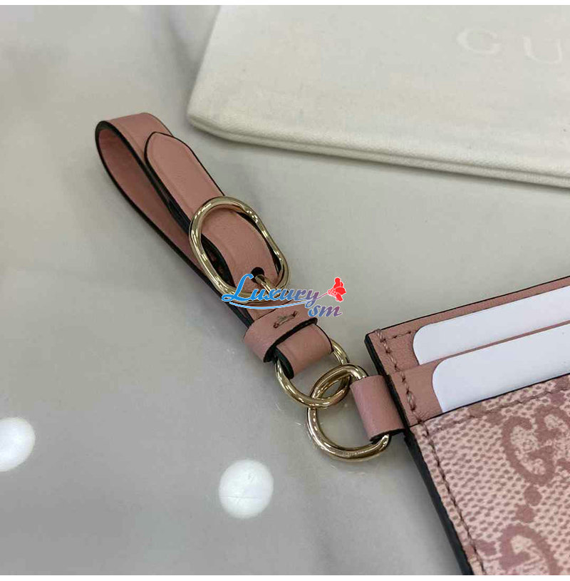 [스페셜오더]GUCCI-819121 8459 구찌 핑크 GG 엠블럼 스트랩 카드 케이스