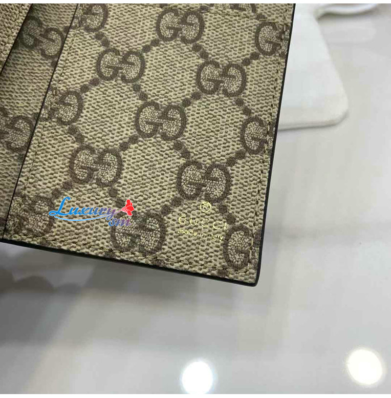 [스페셜오더]GUCCI-818953 1000 구찌 브라운 GG 엠블럼 바이폴드 엠보스 카드 케이스