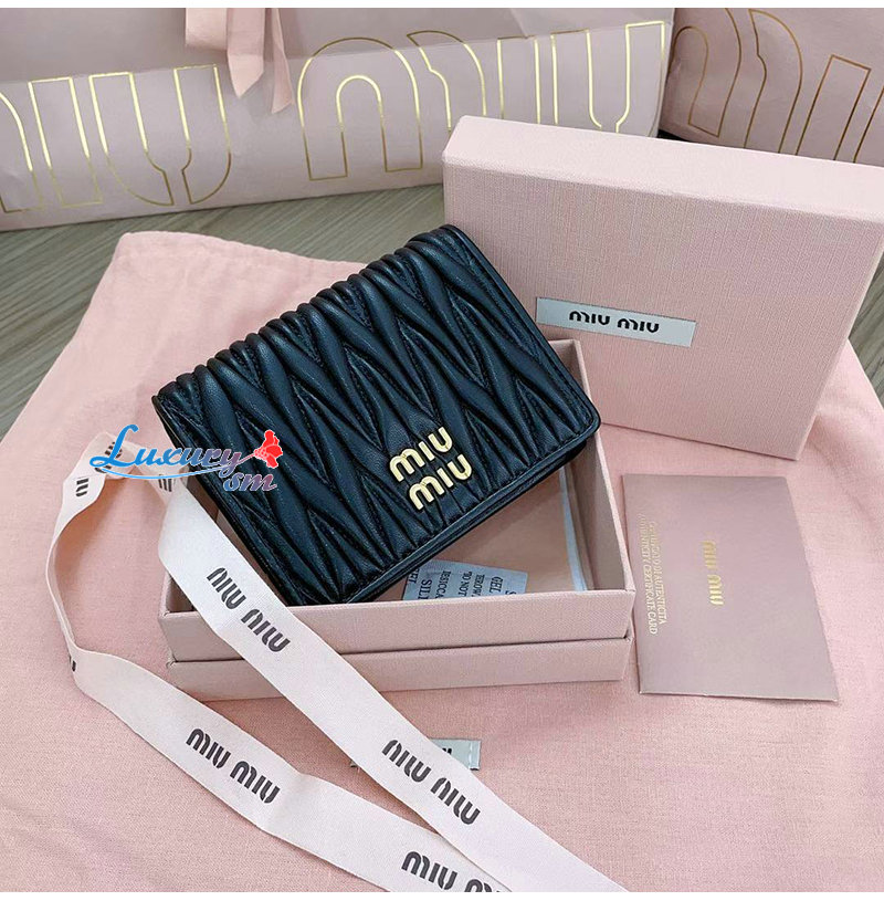 [스페셜오더]MIUMIU-5MV204 미우미우 블랙 마테라쎄 나파 가죽 반지갑