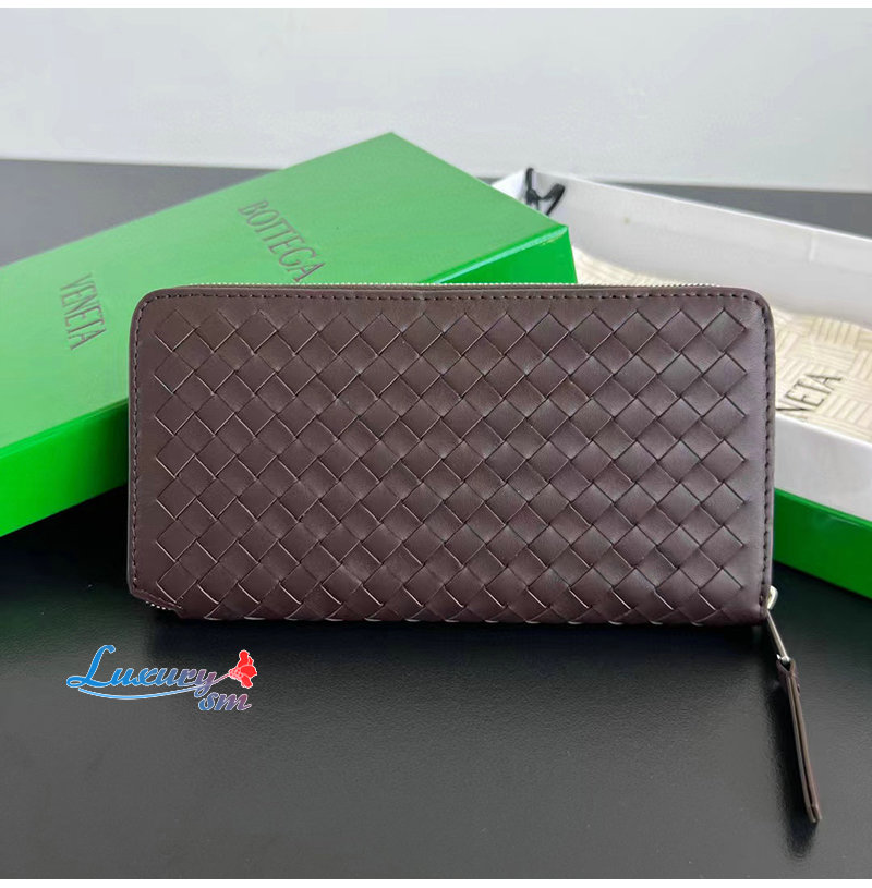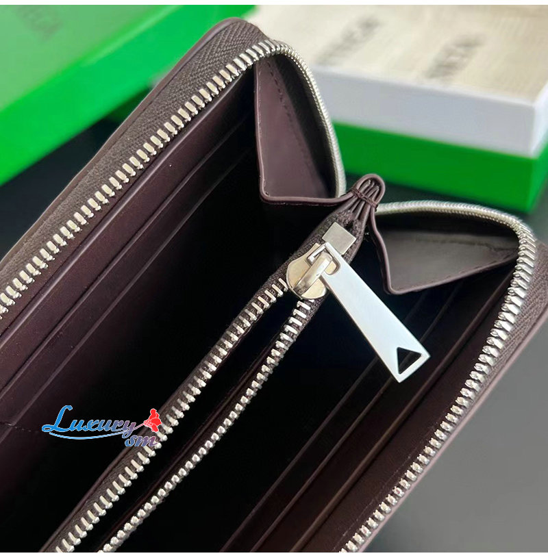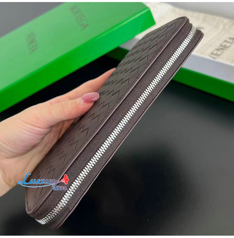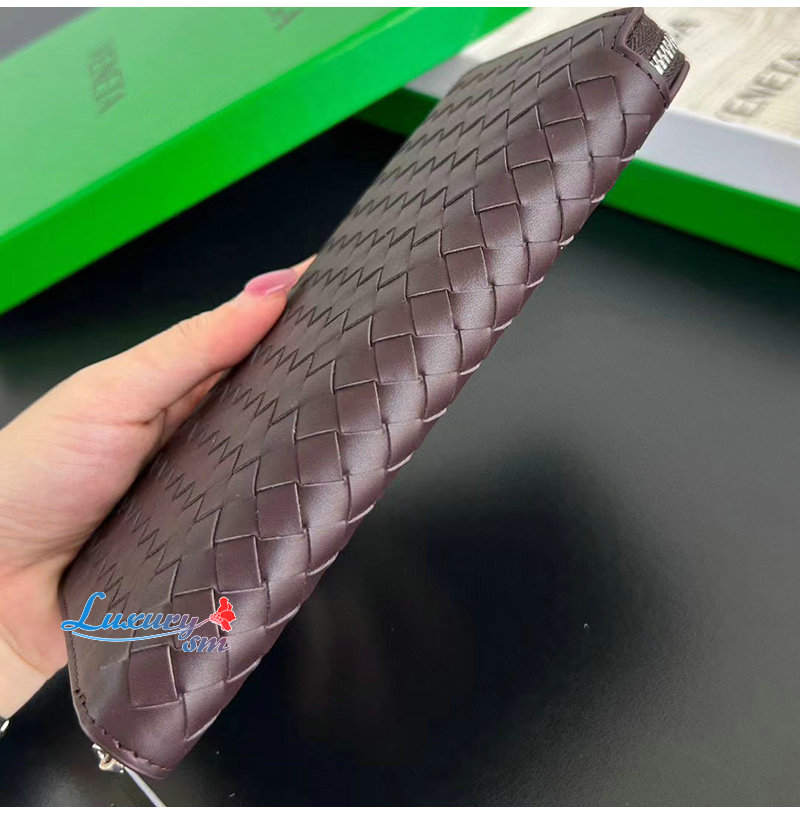 [스페셜오더]BOTTEGA VENETA-814680 인트레치아토 피콜로 지퍼-어라운드 지갑 다크 바콜로