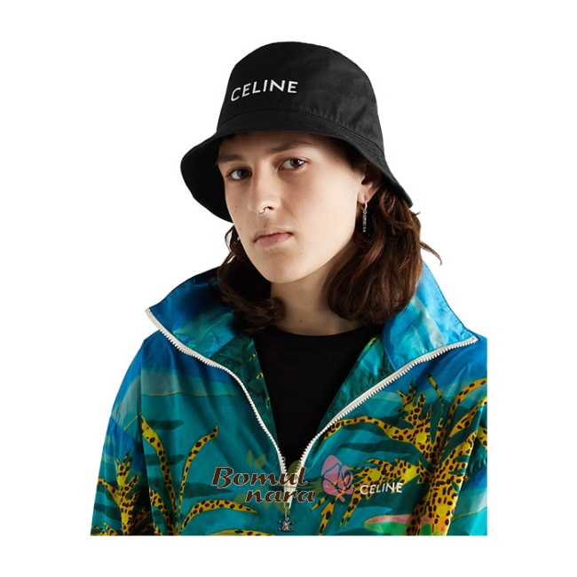 CELINE-2AUD3 셀린느 블랙 로고 프린트 버킷 햇 남녀공용 벙거지 모자