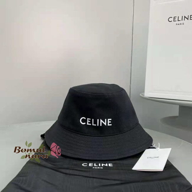 셀린느 블랙 레터링 로고 프린트 버킷햇 남녀 벙거지