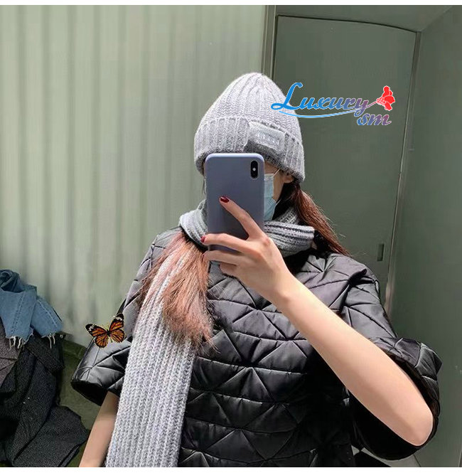 PRADA-10206 프라다 그레이 니트 코튼 비니 여성용