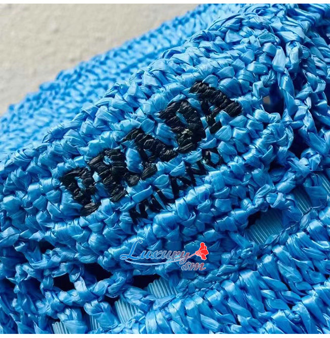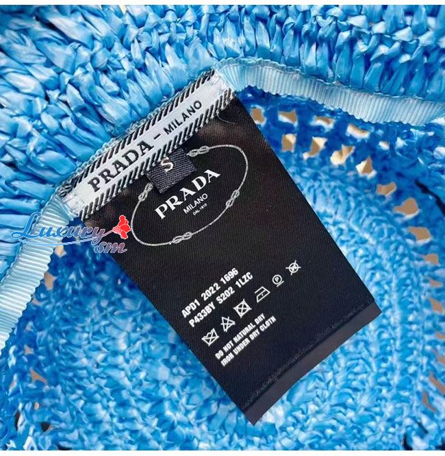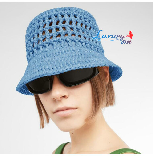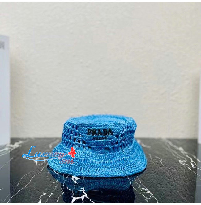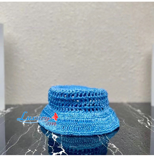 PRADA-1HC137 프라다 블루 라피아 버킷 햇 여성용