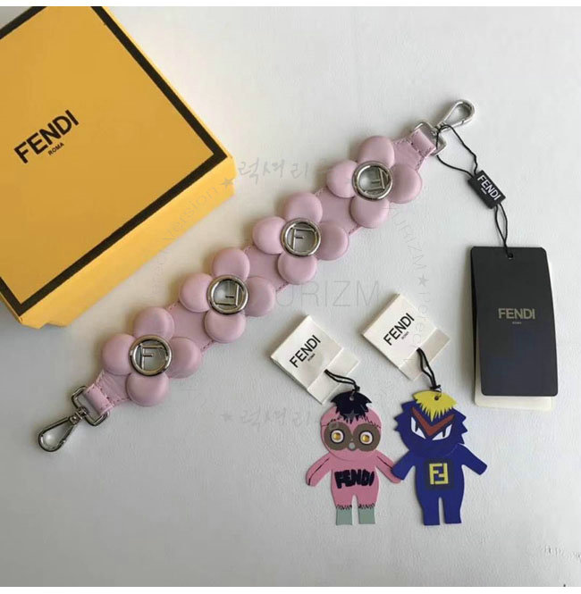 [스페셜오더]FENDI-8AV105 펜디 송아지 가죽 플라워 트리밍 더블 F 핑크 미니 스트랩 유