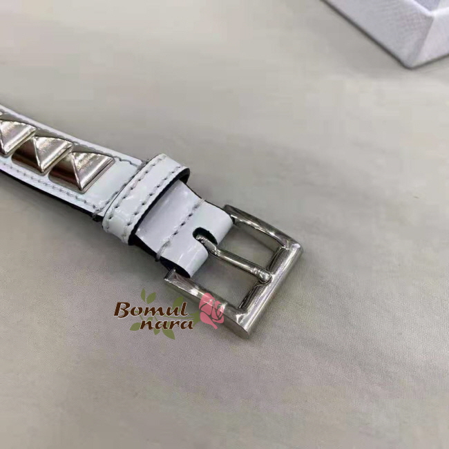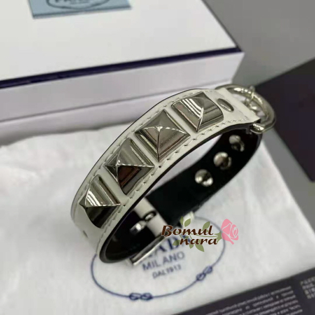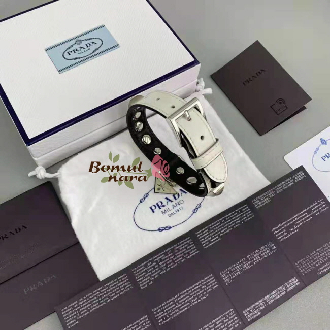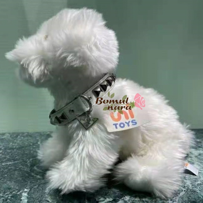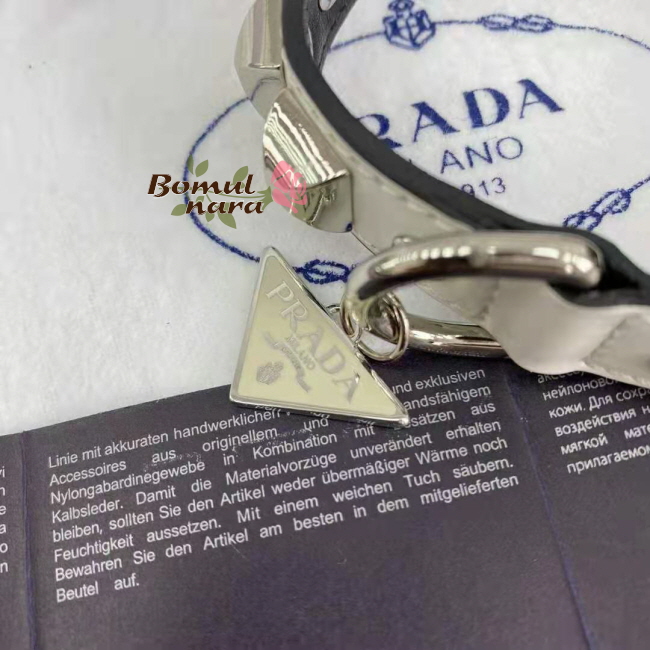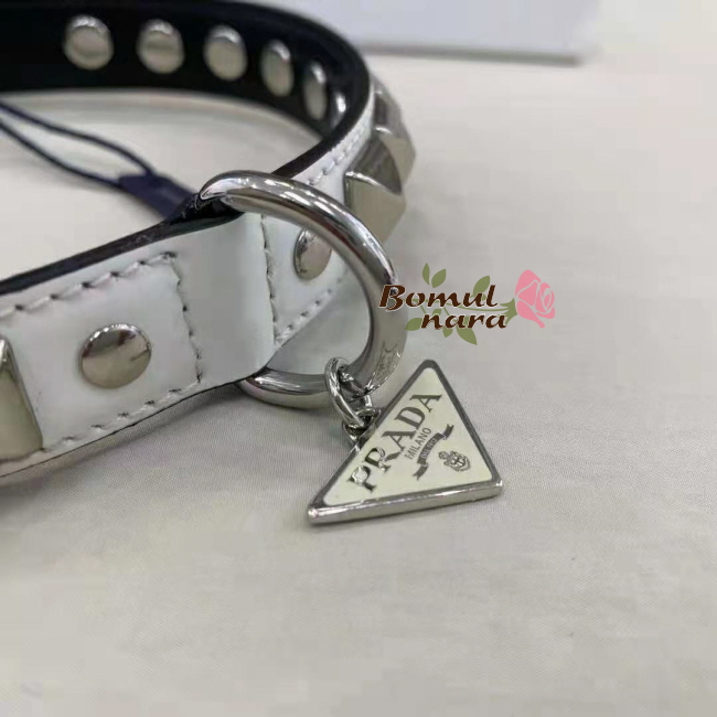 PRADA-2YC013 프라다 화이트 브러쉬드 가죽 반려 동물 목줄 Small