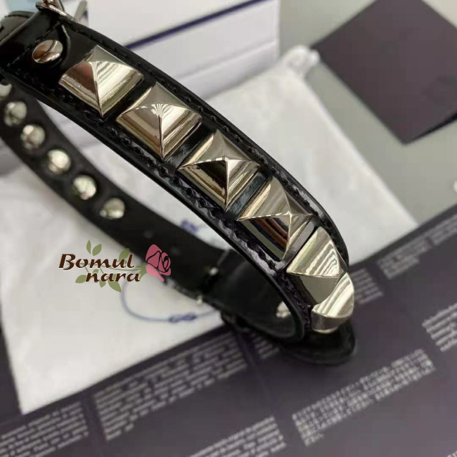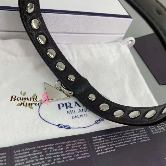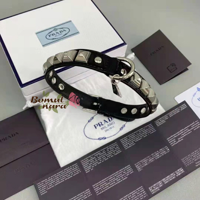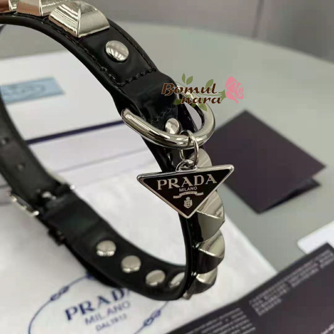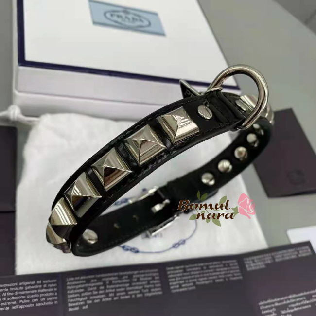 PRADA-2YC013 프라다 블랙 브러쉬드 가죽 반려 동물 목줄 Small