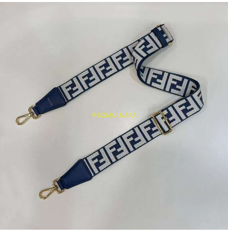 FENDI-8AV386 펜디 블루/화이트 FF 모티프 리본 숄더 스트랩 미니 스트랩 유