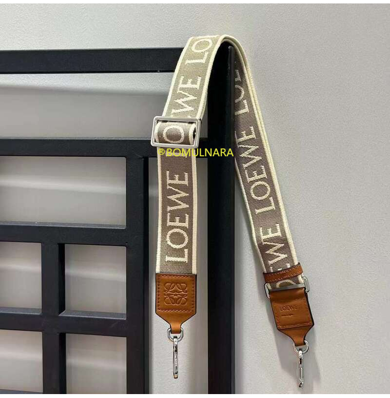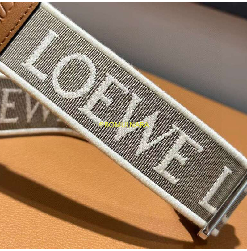 LOEWE-66029 로에베 내추럴/탠 골드 자카드 & 카프스킨 애너그램 스트랩