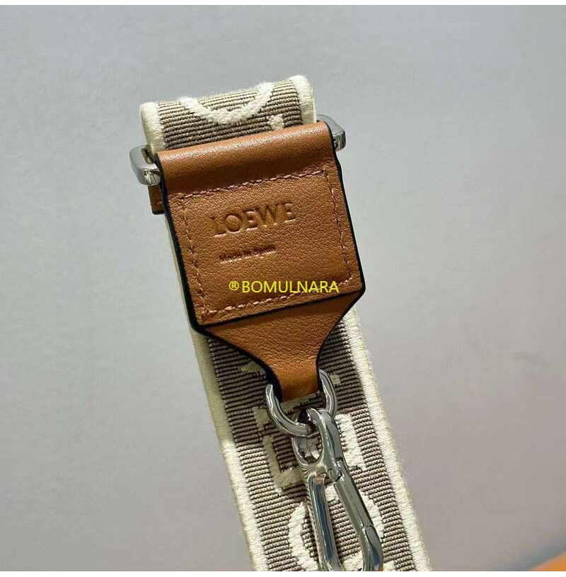 LOEWE-66029 로에베 내추럴/탠 실버 자카드 & 카프스킨 애너그램 스트랩