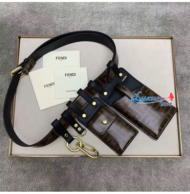 [스페셜오더]FENDI-8C0593 펜디 브라운 더블 F 페브릭 벨트 포켓