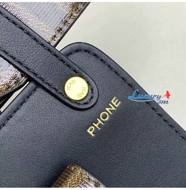 [스페셜오더]FENDI-8C0593 펜디 브라운/카키 더블 F 코튼 송아지 가죽 벨트 포켓
