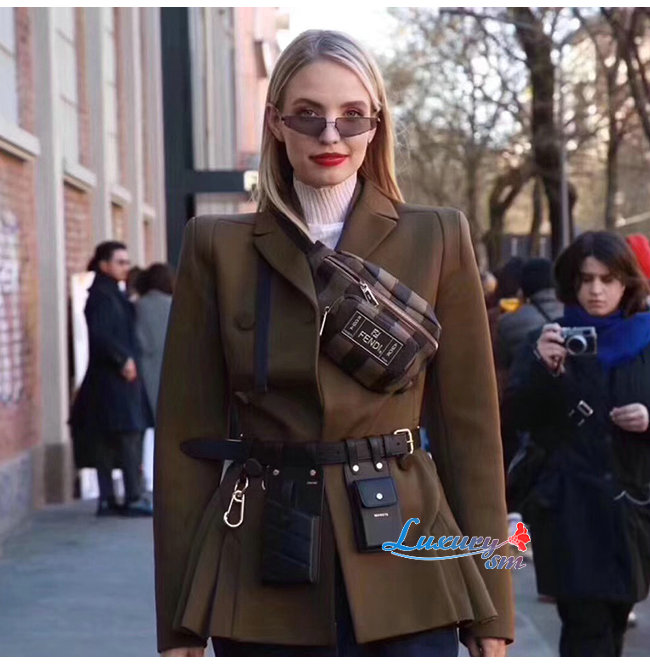 [스페셜오더]FENDI-8C0593 펜디 브라운/카키 더블 F 코튼 송아지 가죽 벨트 포켓 가격 : 340,000원