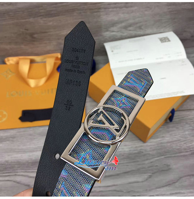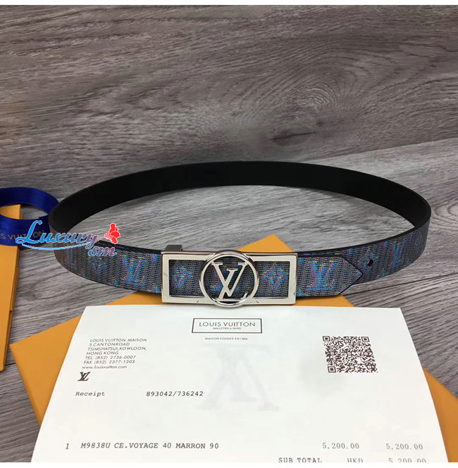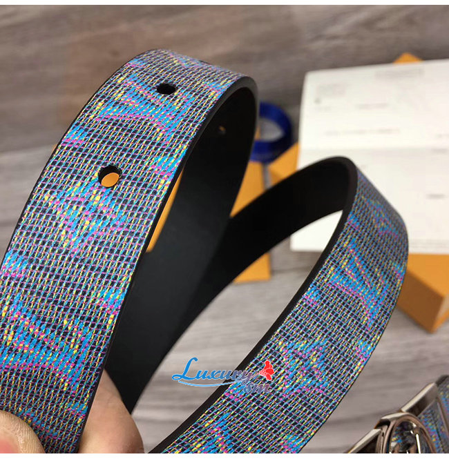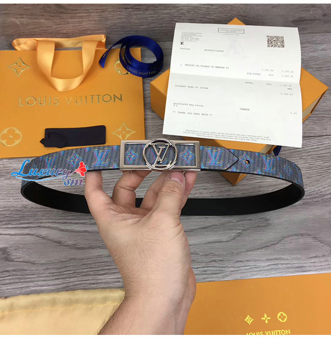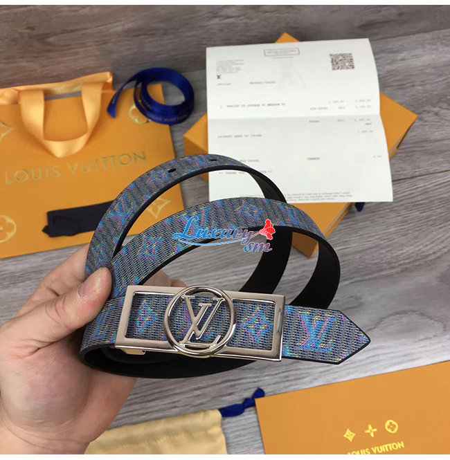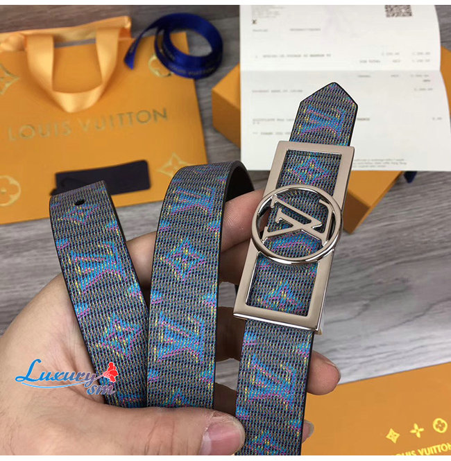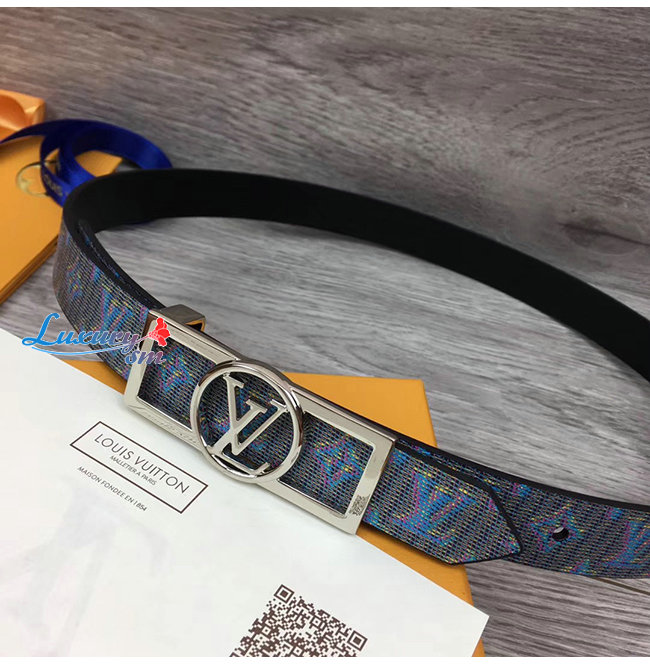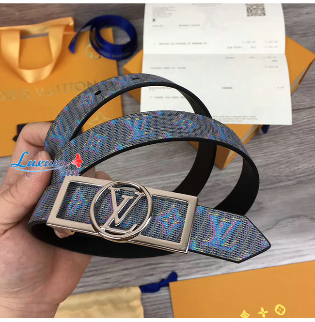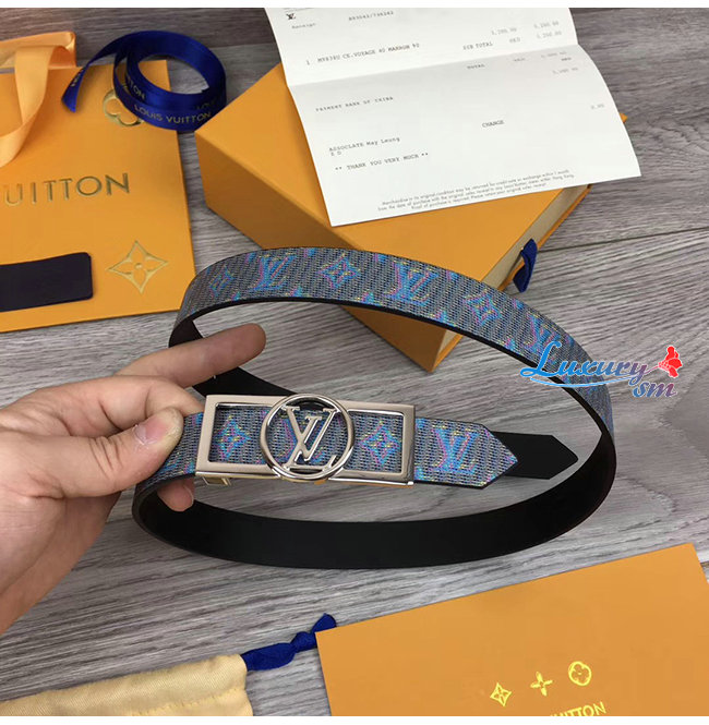 LOUIS VUITTON-MP136W 루이비통 블루 모노그램 LV 팝 프린트 도핀 리버서블 벨트 25MM