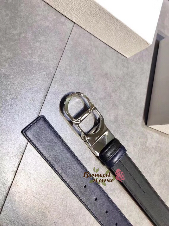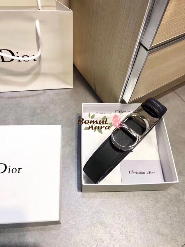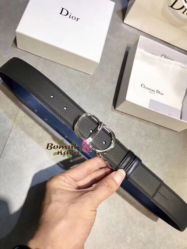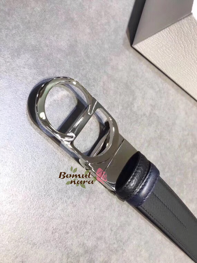 DIOR-4444PLTAF 디올 블랙/네이비 실버 메탈 CD 버클 남성용 벨트 35mm