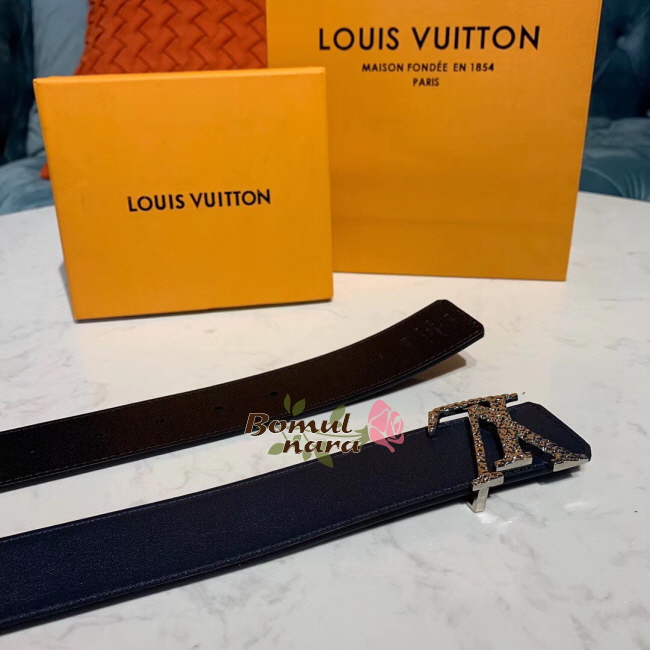 LOUIS VUITTON-M0163U 루이비통 블랙 카프스킨 LV 모자이크 리버서블 벨트 40MM