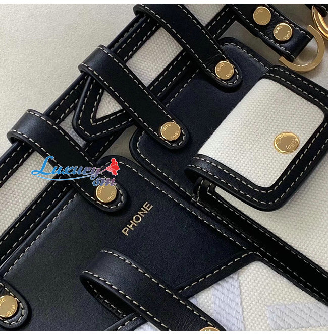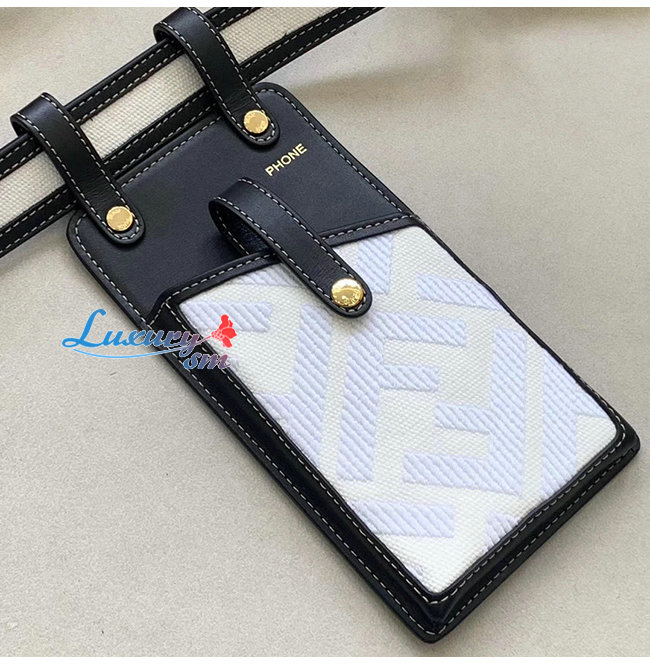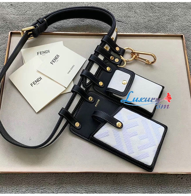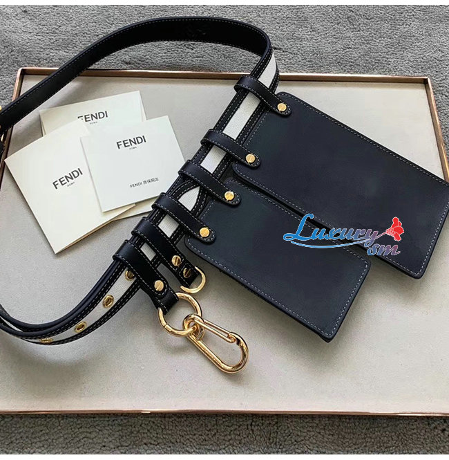 [스페셜오더]FENDI-8C0593 펜디 블랙/화이트 더블 F 코튼 송아지 가죽 벨트 포켓