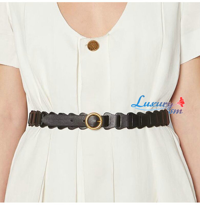가죽 링크 골드 마감 원형 버클.