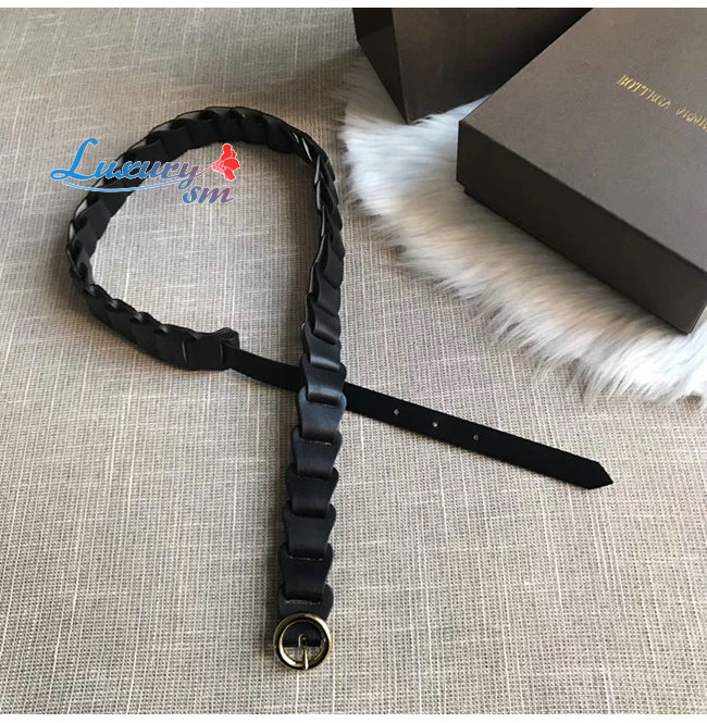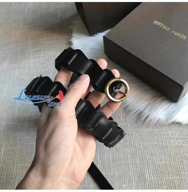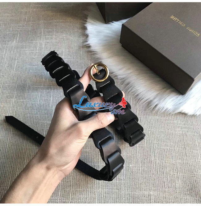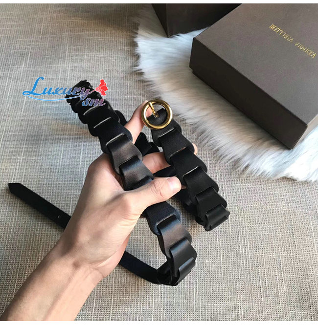 BOTTEGA VENETA-573991 보테가 베네타 네로 카프스킨 모듈식 링크 디자인 벨트