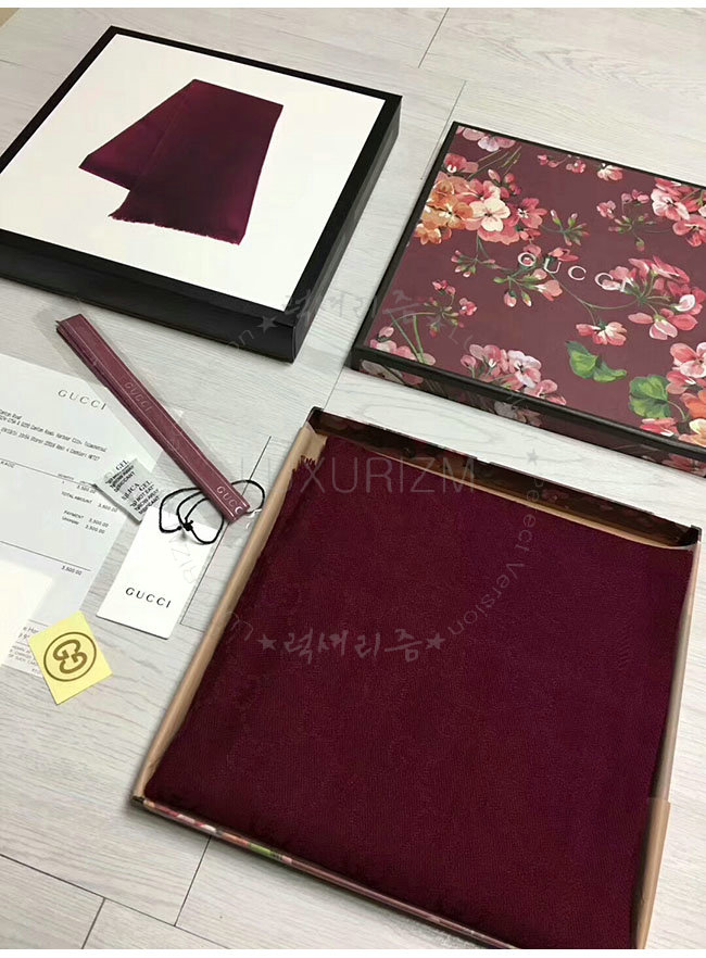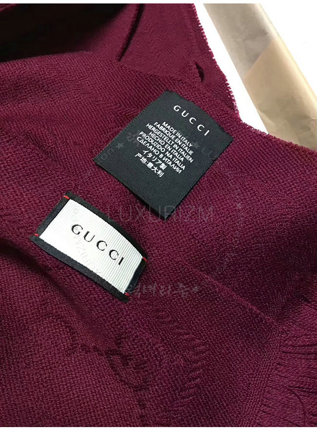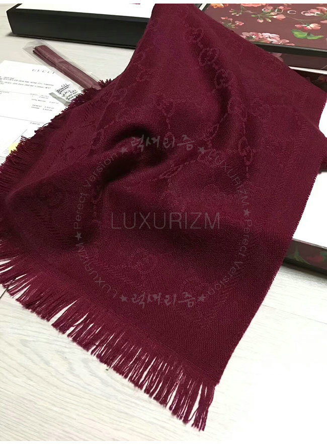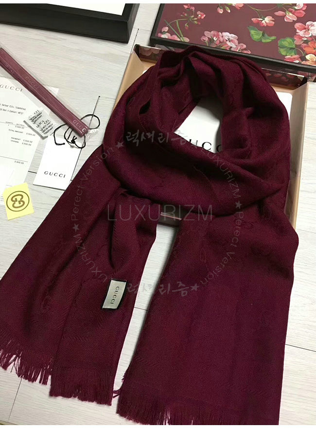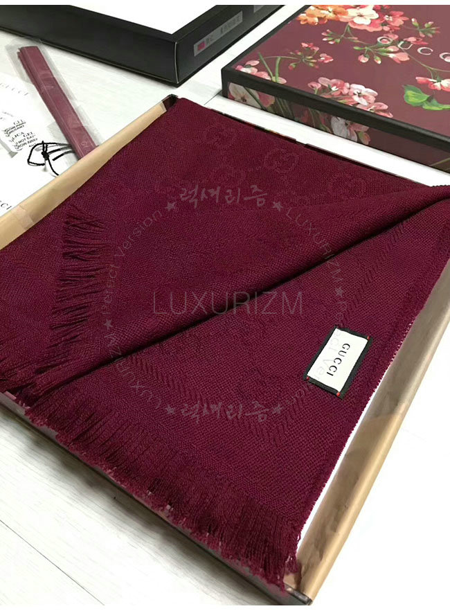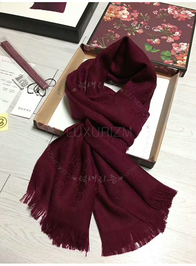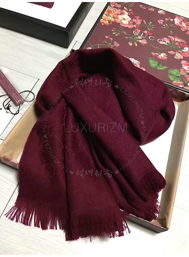 GUCCI-133483 3282 구찌 와인 자카드 패턴 니트 스카프 여성용