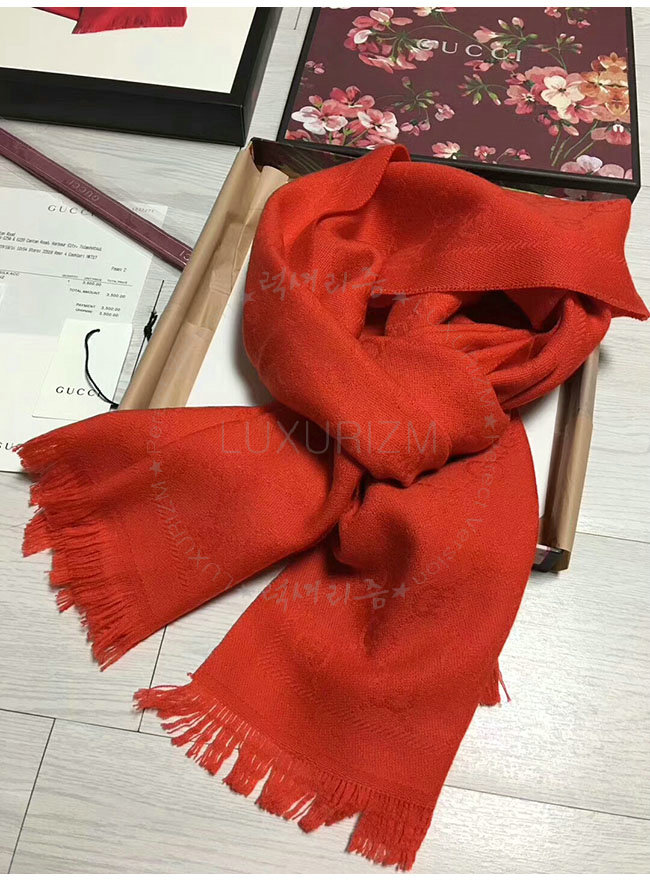 GUCCI-133483 5496 구찌 레드 자카드 패턴 니트 스카프 여성용