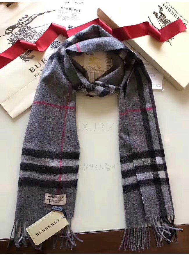 BURBERRY-38950931 버버리 클래식 미드 그레이 체크 캐시미어 스카프 남녀공용