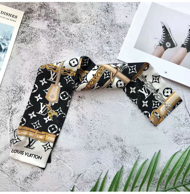 루이비통을 대표하는 부속 디테일을 프린트한 실크 방도로 선물하기 좋은