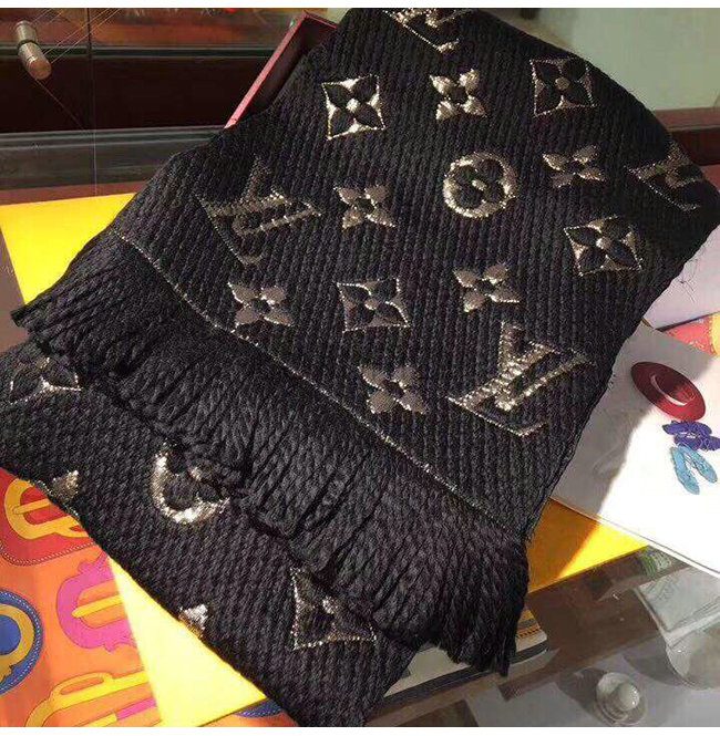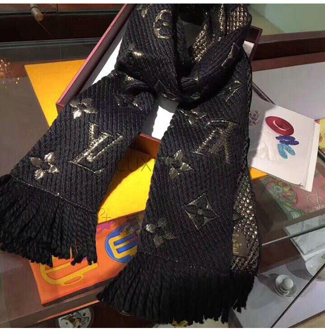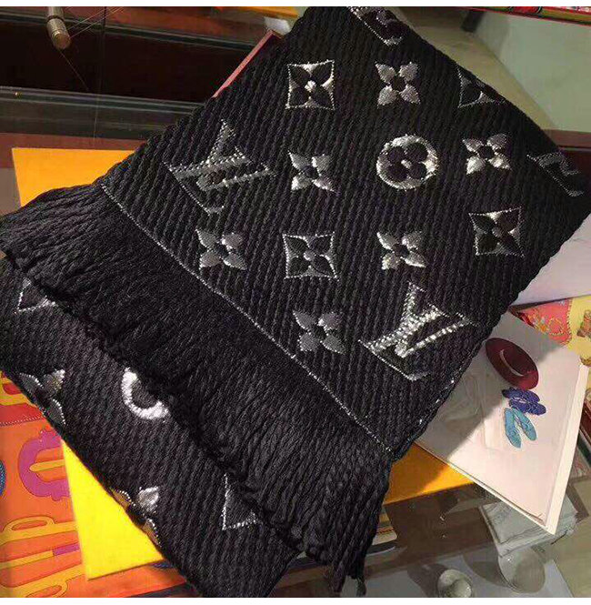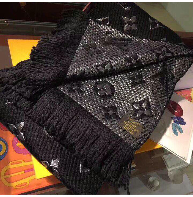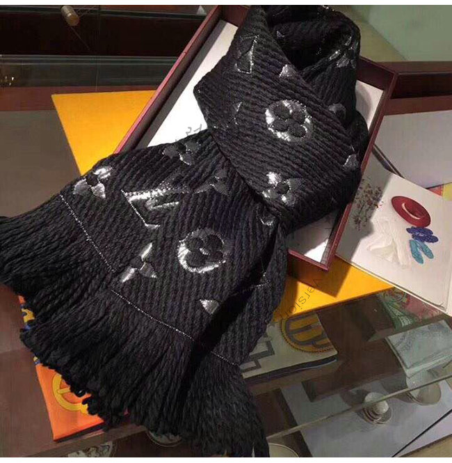LOUIS VUITTON-M75833 루이비통 블랙 울 로고마니아 샤인 스카프
