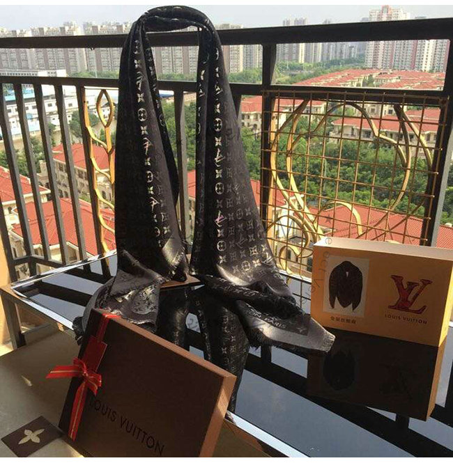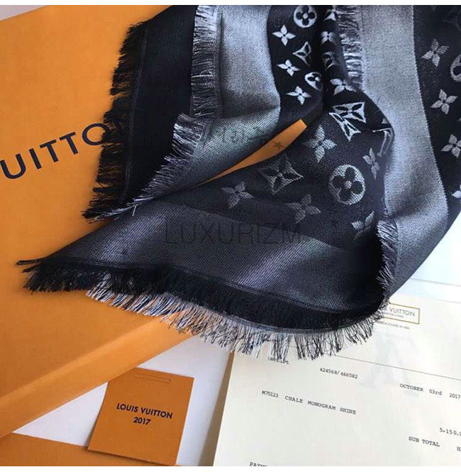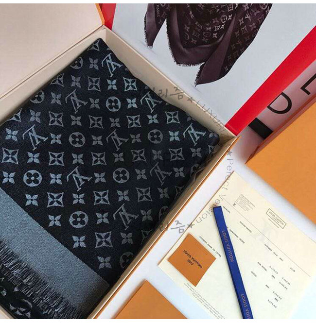 LOUIS VUITTON-M75123 루이비통 블랙 실크 모노그램 샤인 숄