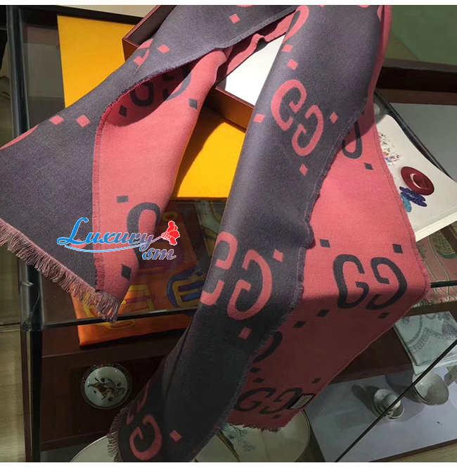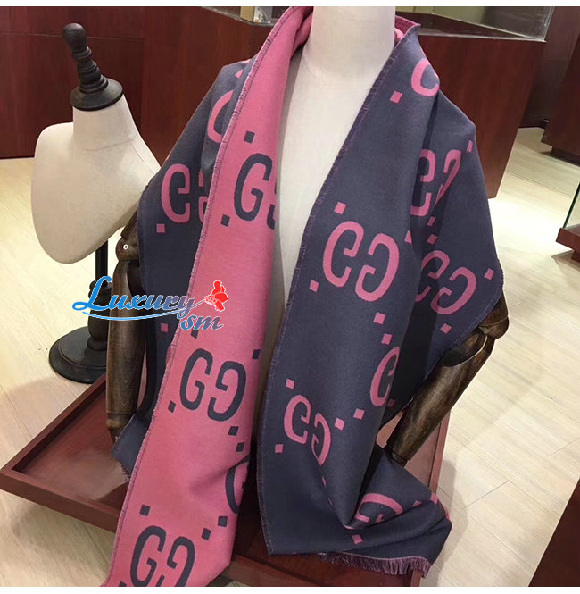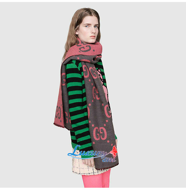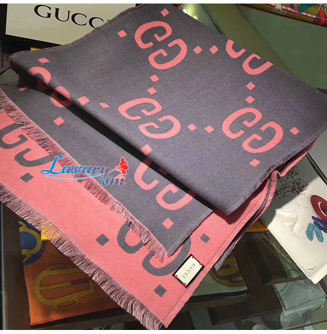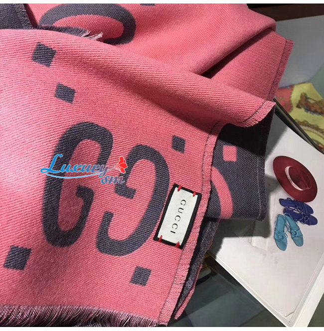 GUCCI-558007 1272 구찌 그레이/핑크 GG 자카드 울 실크 스카프
