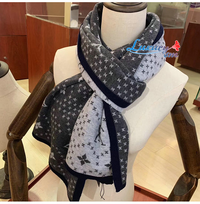 LOUIS VUITTON-M76037 루이비통 그레이 모노그램 플레이크 니트 스카프