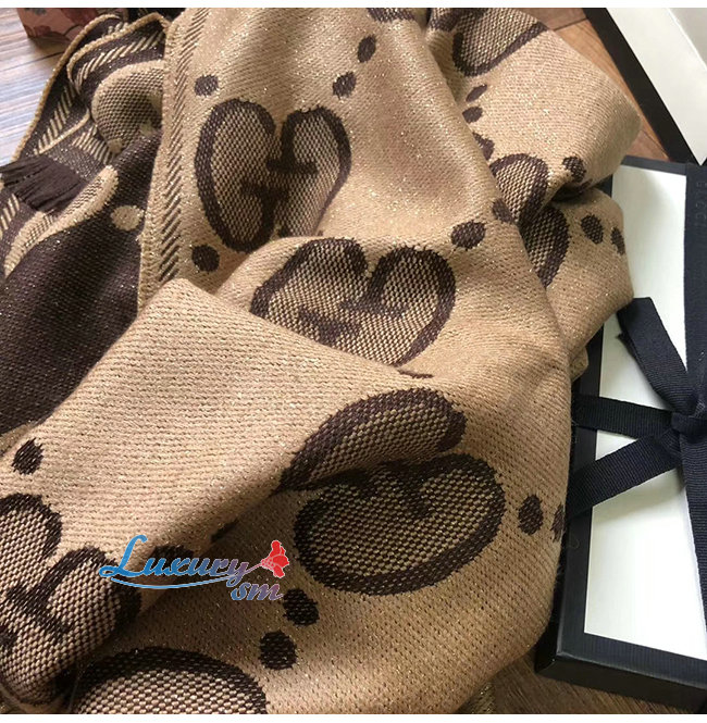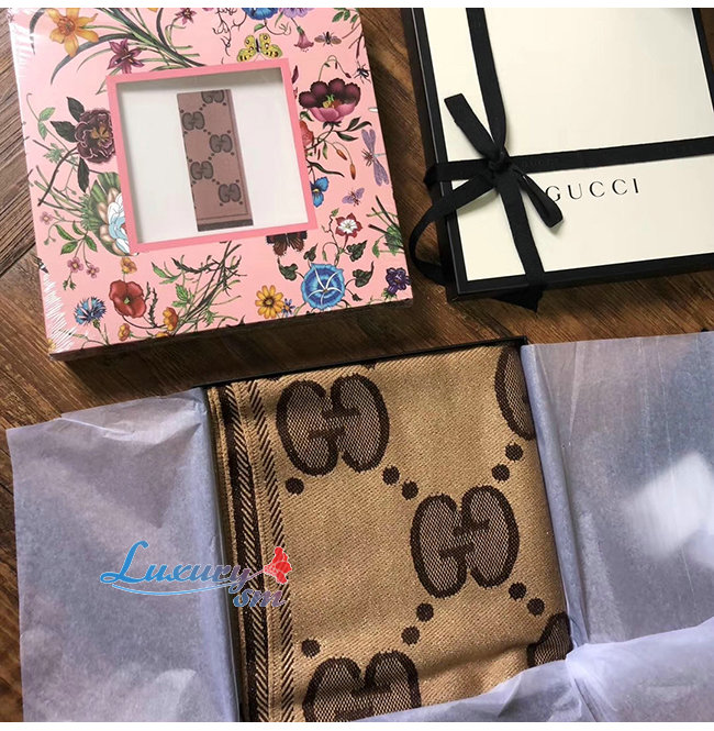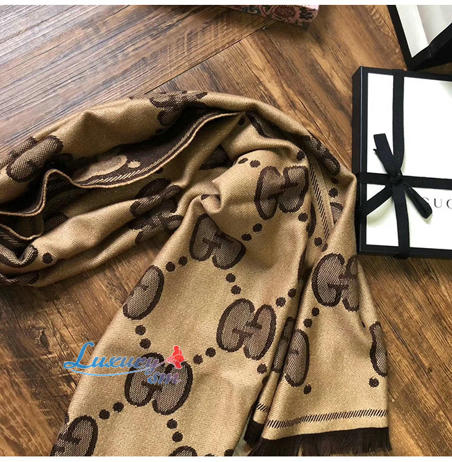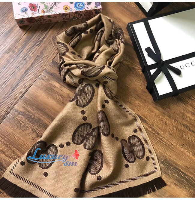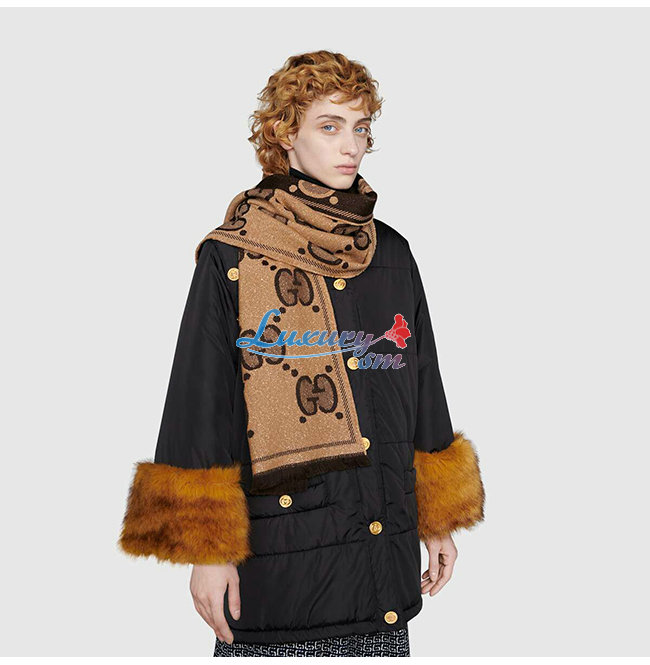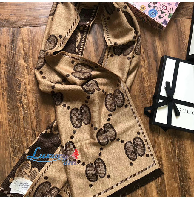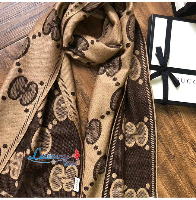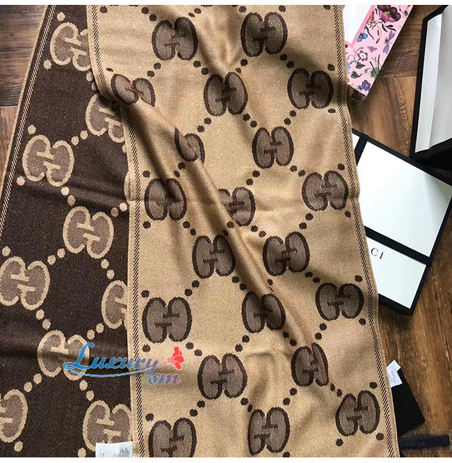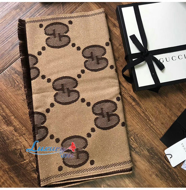 GUCCI-598993 9764 구찌 베이지/다크 브라운 GG 울 자카드 스카프