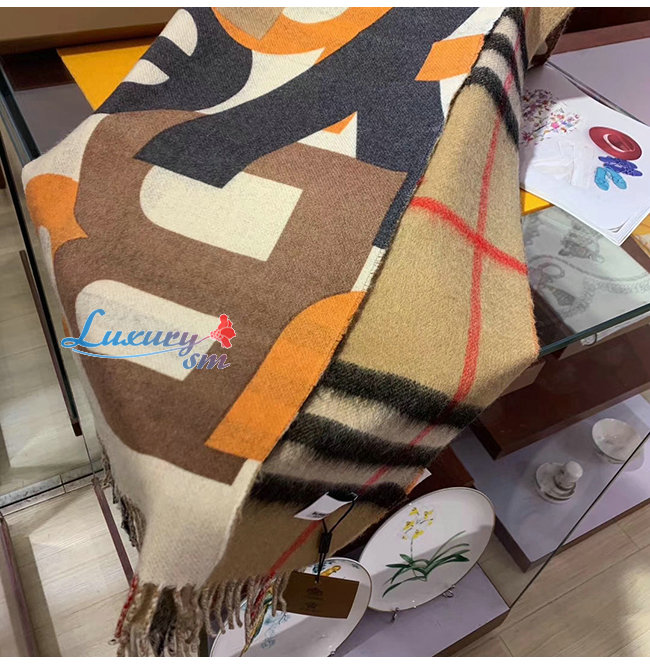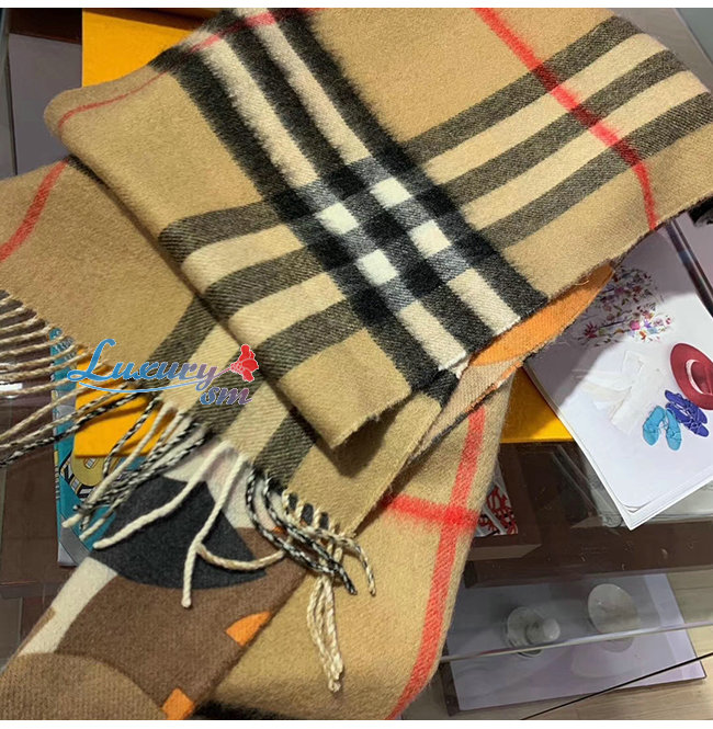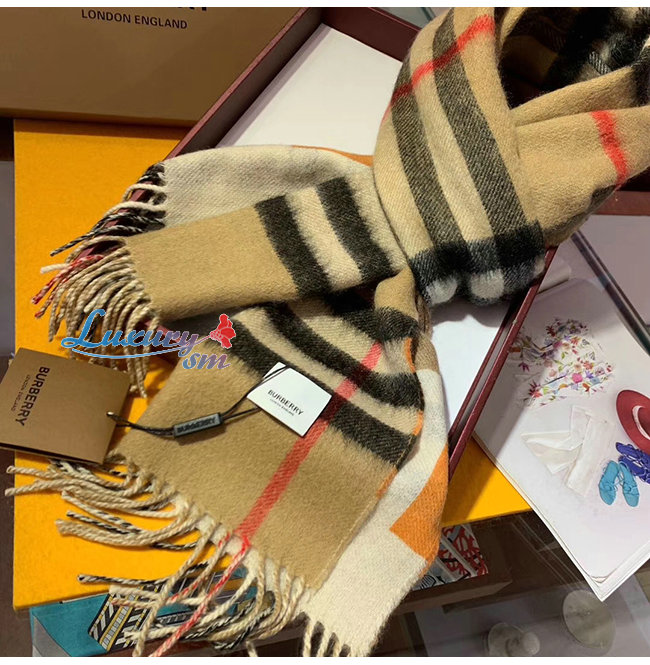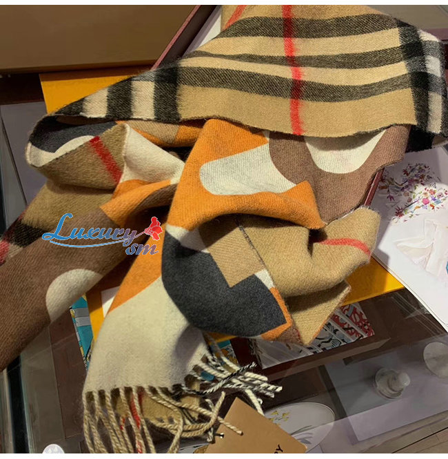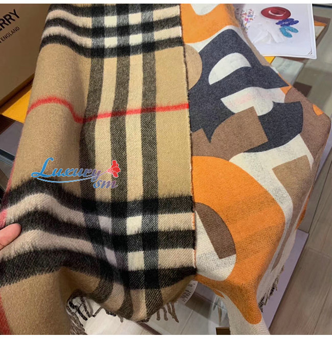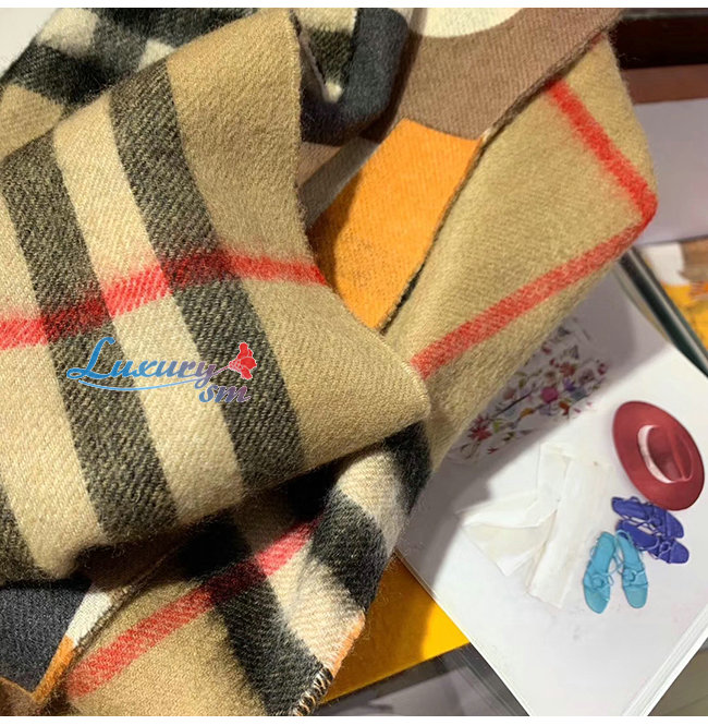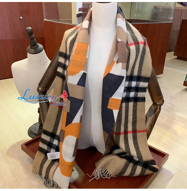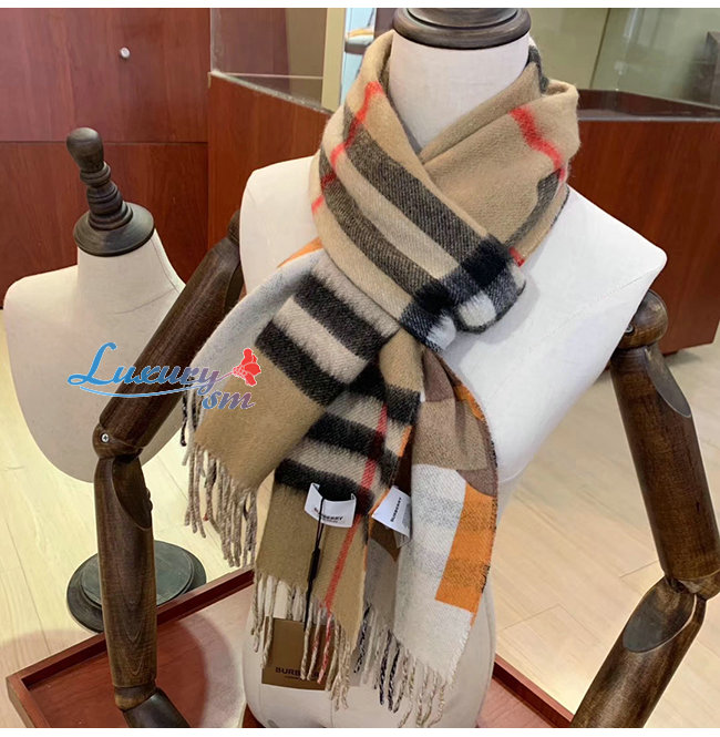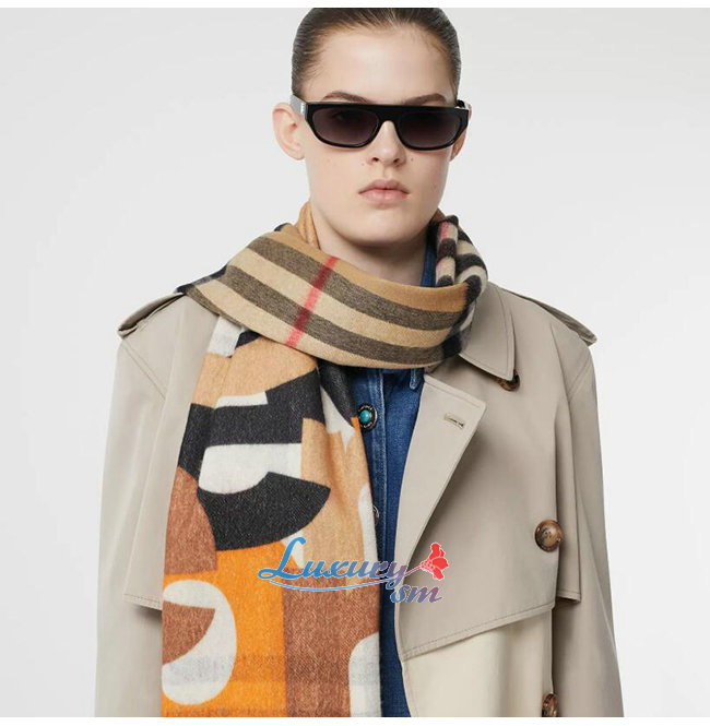 BURBERRY-80244701 버버리 월넛 블록 프린트 체크 캐시미어 스카프