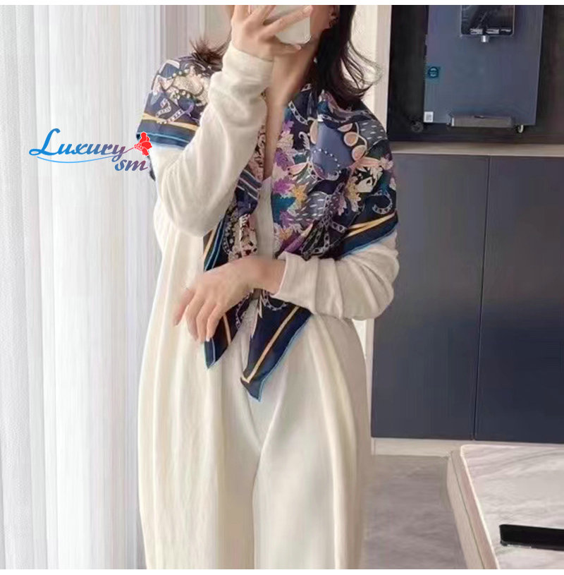 HERMES-H003903 에르메스 네이비/화이트 Le Sacre des Saisons 스카프