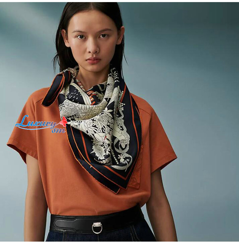 실크 트윌 소재의 스카프.