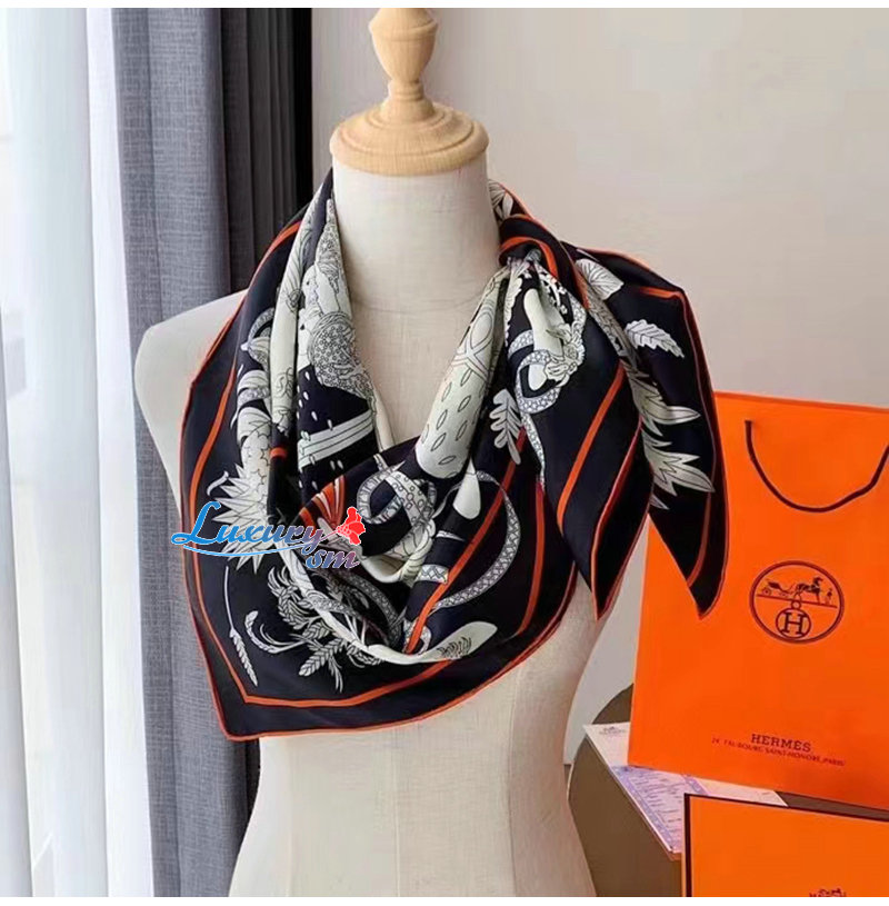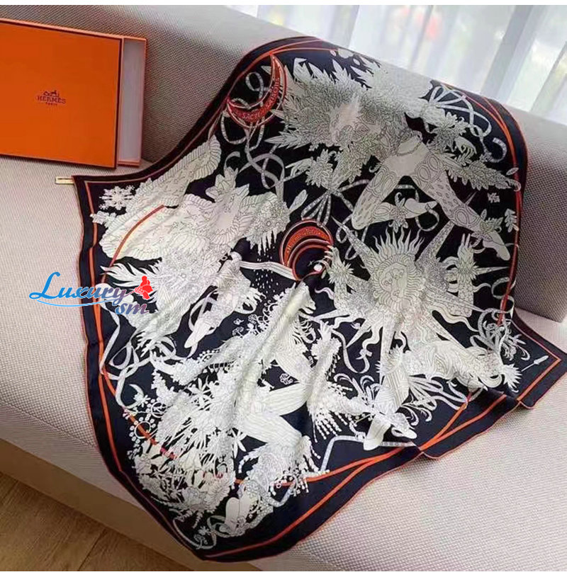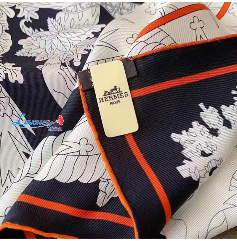 HERMES-H003903 에르메스 네이비/화이트 Le Sacre des Saisons 스카프